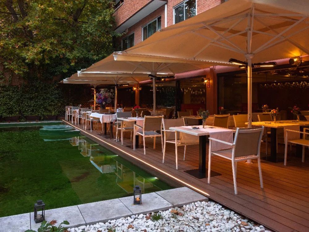 El espacio que lo acoge presenta una decoración inspirada en una nueva India moderna, elegante y urbanita gracias a la combinación de materiales, texturas y tonos, y al uso de celosías de madera. Además de su acogedora terraza a pie de calle, en su interior Benares cuenta también con una terraza íntima perfecta con estanque, que se presenta como un oasis de tranquilidad y disfrute para los cinco sentidos en pleno corazón de la capital en el que degustar tanto la propuesta gastronómica como su nueva carta de cócteles inspirada en la medicina tradicional india.