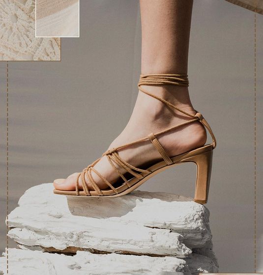 6Sandalias de tiras y lazos de macramé en nude, de Primark