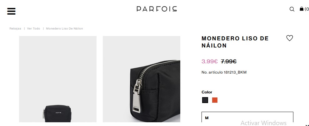 Es uno de los monederos más hermosos y vendidos por la plataforma de Parfois, dado que cuenta con un hermoso diseño. Dado que es uno monedero liso de nylon y cuenta con un cierre de cremallera para darle un toque más único al diseño. En la parte exterior e interior son fabricadas a 100% de poliéster. Además, tiene unas perfectas dimensiones que lo hace perfecto para trasladar a cualquier parte. Inclusive, tiene un hermoso diseño de la marca en la parte delantera, para darle un toque más único e increíble. Entonces, si estás buscando un hermoso monedero, solo debes entrar a Parfois por solo 3.99€.
