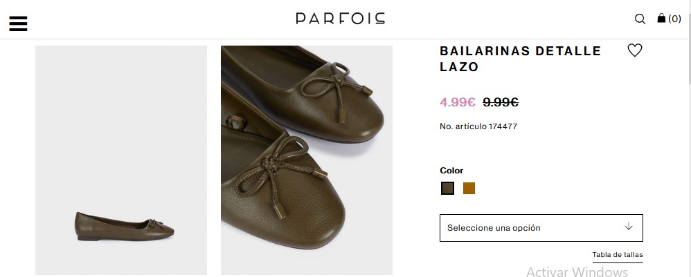 Estas hermosas bailarinas son uno de los productos más adquiridos por las mujeres, cuando entran en la plataforma. Ya que, cuenta con un hermoso diseño y estilo para usar en todo momento. Cuenta con un hermoso detalle en la parte delantera tipo lazo, para darle un toque increíble y hermoso a la bailarina. En la parte exterior está fabricada al 100% poliuretano, mientras que la parte interior es de 92% poliuretano y 8% poliéster. Además, la composición de la suela es de 100% de caucho y un tacón en 0cm. Así que, anímate a comprar esta hermosa bailarina a un precio accesible por Parfois a 4.99€.