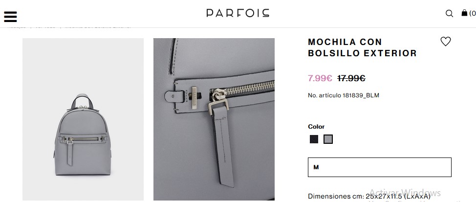 Es una hermosa mochila perfecta para usar y guardar cosas que sean de gran utilidad para donde vayamos. Cuenta con un bolsillo en la parte exterior para darle un toque único y hermoso en todo momento. En la parte exterior son fabricados en 100% poliuretano, mientras que el interior es fabricado en 100% poliéster. Cuenta con una abertura zipper y una longitud asa, que permite que sea más cómoda aún. Tiene unos pequeños detalles en su estructura para diferenciarlo de las demás mochilas. Así que, entra a Parfois para comprar esta mochila a un precio increíble de 7.99€.