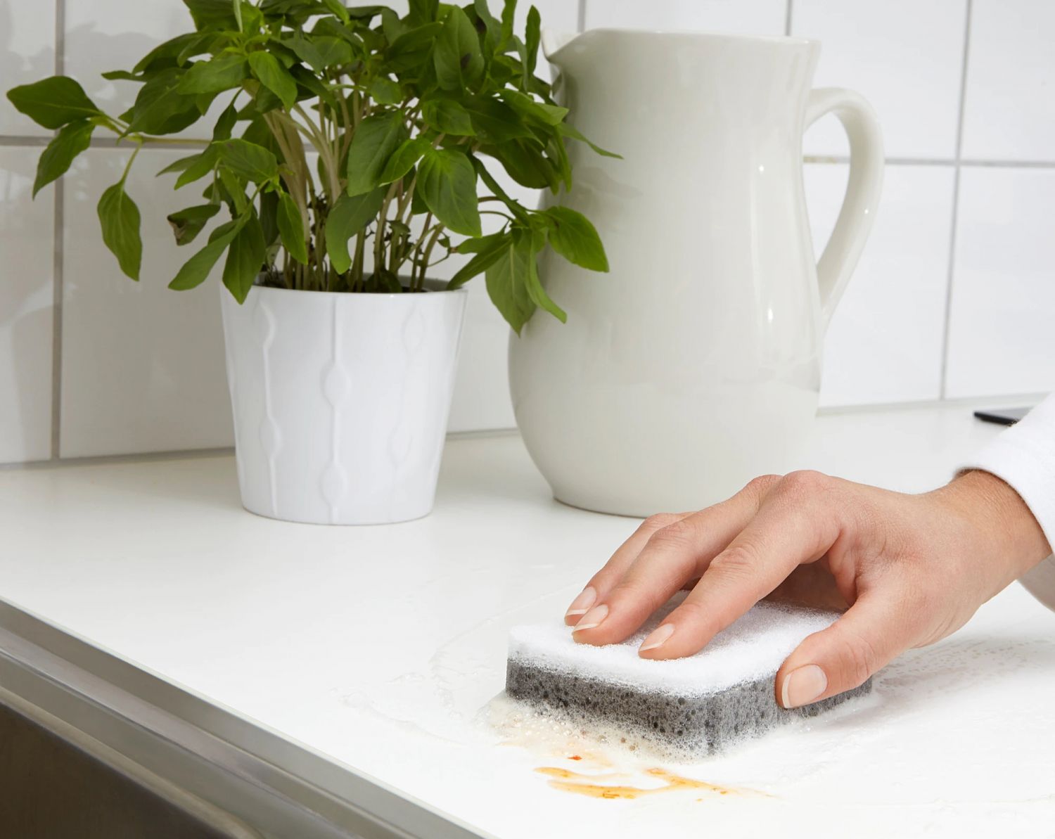 Una de las esponjas usa una textura suave para superficies más delicadas, como los platos. El otro lado es rugoso, para rascar las manchas más persistentes.