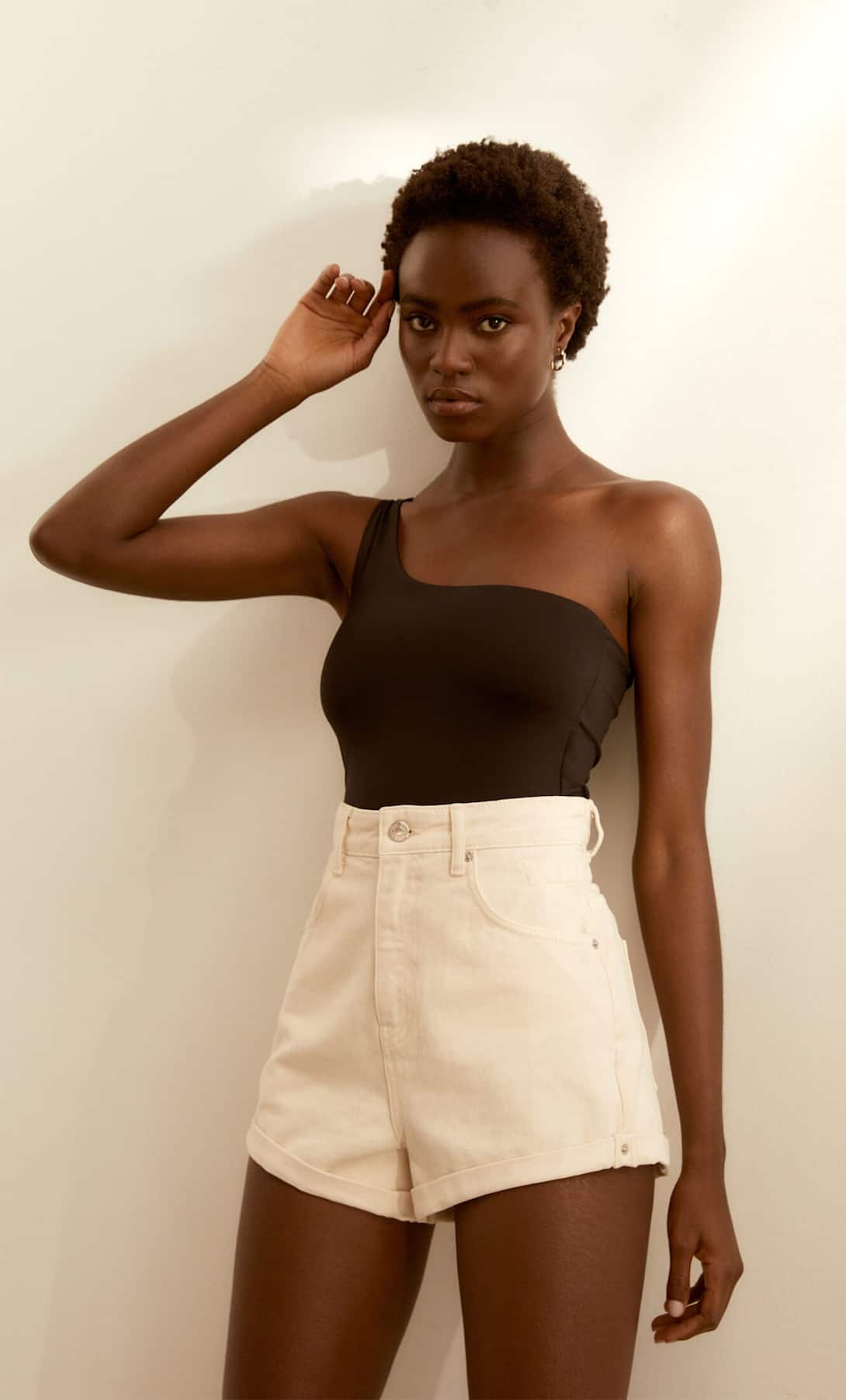 Se trata de un pantalón corto de tiro alto y ancho de pierna, con un cierre frontal mediante cremallera y botón. Perfecto para lucirlo en combinación con todo tipo de tops y camisetas.