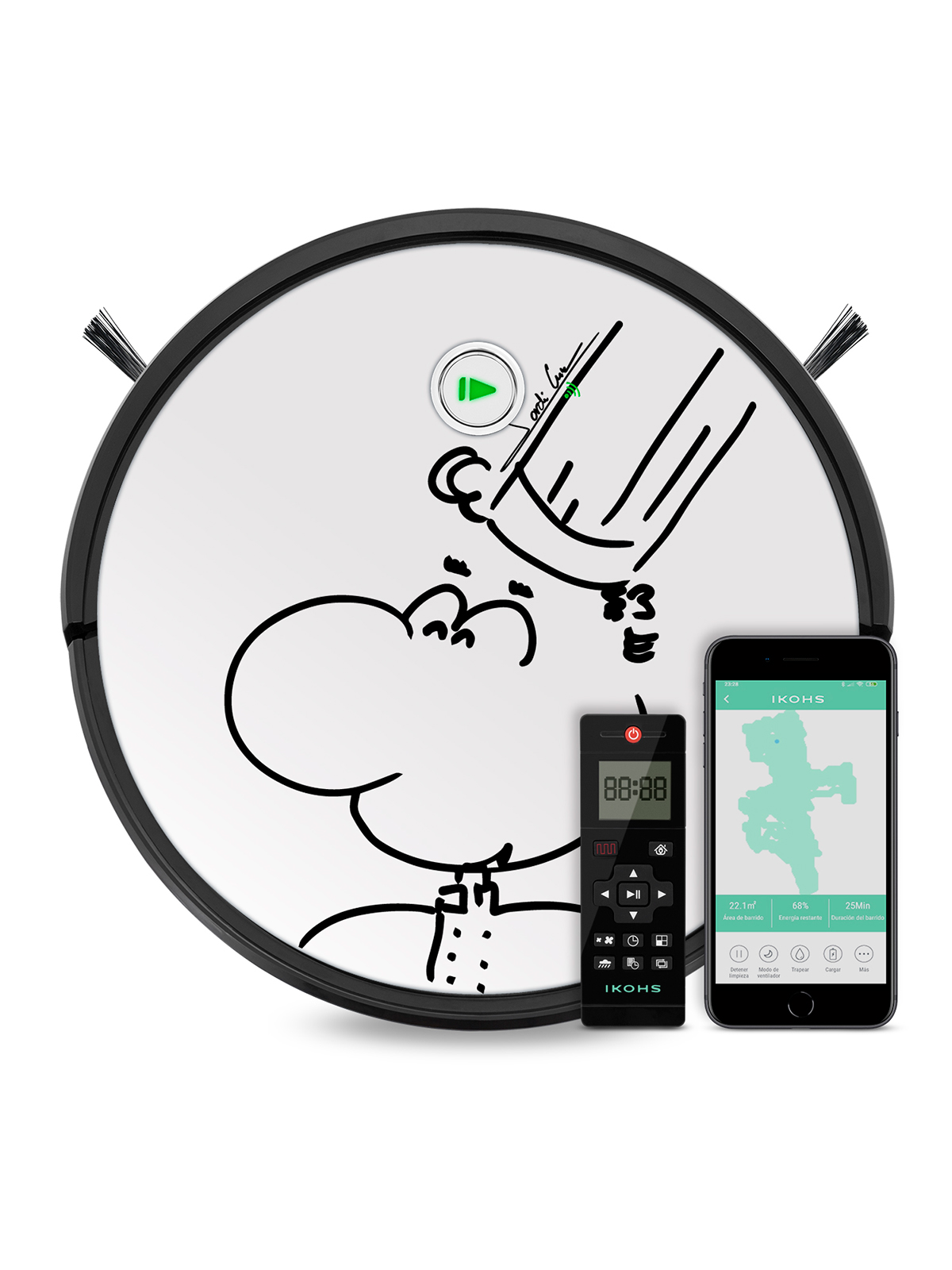 Esta versión del robot aspirador Netbot S15 es perfecta para los fans incondicionales del chef, con un divertido dibujo que recuerda a él. Es un auténtico cuatro en uno que se encarga de barrer, aspirar, pasar la mopa y fregar, apto para todo tipo de superficies y con sistema de navegación inteligente.