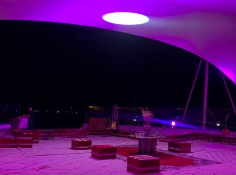 La cena culminó y un joven dj llegó hasta la carpa del desierto. Allí, míticos éxitos de la música española comenzaron a escucharse. Desde la Macarena hasta el Aserejé, como si de una boda española se tratase. También se escuchaba de nuevo la voz de Nissrin Bouguida que interpretaba a la perfección versiones de más canciones modernas. En la barra servían cerveza Casablanca, vino blanco, zumos, refrescos y champagne. Los empresarios españoles colonizaban este espacio como suele ser habitual. Una fiesta en el desierto ideal para conocerse. Sobre una duna y a orillas del mar, los empresarios disfrutaron de su particular “mil y una noches” en el Reino de Marruecos.