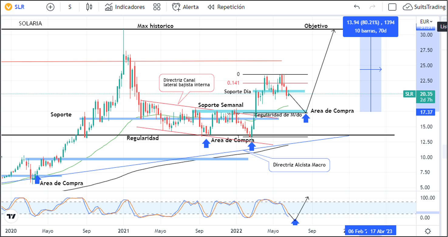 Si hay algo que tenemos claro es que técnicamente las acciones de Solaria deberán visitar en algún momento los máximos históricos registrados en enero de 2021 cuando alcanzó los 31 euros por acción. Lo que debemos detallar es el área saludable en la que debemos invertir con el fin de disminuir el riesgo y, por ende, obtener un mayor beneficio.