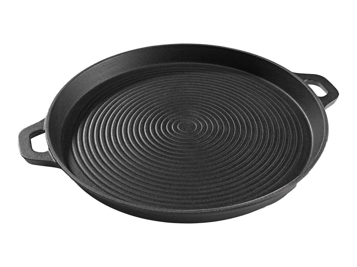 Seguimos con este kit general especializado, para convertir tu terraza o jardín en un auténtico paraíso de la parrilla y la barbacoa. Pero cuidado, que si puedes variar de las carnes a verduras, a pizzas o a pescados, también puedes organizar una paellada o un buen guiso que domines en esta sartén parrilla de hierro fundido de 2,8 litros con alta conductividad térmica con prácticas asas para sujetar. Para perfectos filetes, parrilladas de verduras o patatas asadas también y apta para barbacoas de gas y de carbón, cocinas de gas, hornos o para usar directamente en el fuego. Su precio en Lidl es de tan solo 19,99 euros.