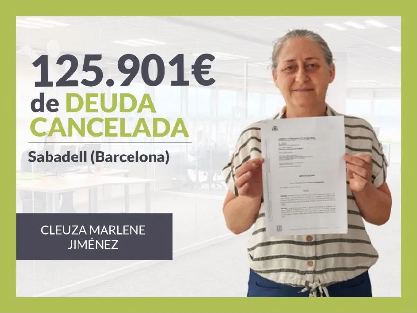 Repara tu Deuda Abogados, despacho de abogados líder en España en la tramitación de la Ley de Segunda Oportunidad, ha logrado una nueva cancelación de deuda en Sabadell (Barcelona). Mediante la gestión de Repara tu Deuda Abogados, el Juzgado de lo Mercantil nº11 de Barcelona ha dictado beneficio de exoneración del pasivo insatisfecho (Bepi), en el caso de Cleuza Marlene Jiménez que había acumulado una deuda de 125.901 euros a la que no podía hacer frente. VER SENTENCIA.