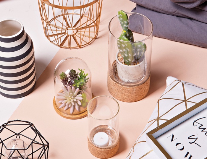 Puedes combinar ambos tamaños o bien escoger el mismo tamaño. Claro está que nosotros recomendamos la combinación de diferentes tamaños para crear un ambiente más relajado. ¿Qué es lo que más te gusta a ti? También puedes usar los portavelas para meter otros accesorios como, por ejemplo, un cactus.