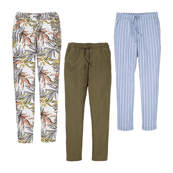 Si te han gustado los vestidos que hemos visto al principio, te interesará saber que tienes los mismos estampados disponibles en versión pantalón de lino. Perfectos para combinar con alguno de tus tops favoritos.