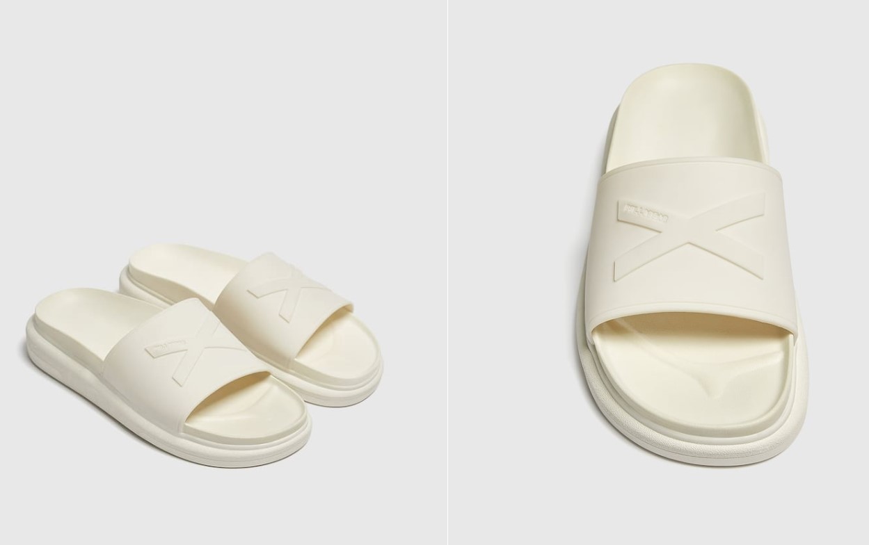 Seguimos con esta lista de sandalias de moda de hombres que encontramos en la tienda de Pull&Bear por menos de 20 euros. Hemos encontrado estas sandalias tipo pala disponible en varios colores: blanco, marino, gris tostado o negro. Cuenta con una tira ancha en el empeine. Tiene una suela con volumen y la altura es de 4.5 cm. Su composición es 100% poliuretano termoplástico al igual que la suela. Las consigues en su tienda web en los talles del 40 al 45. El precio de lista es de 15,99 euros.