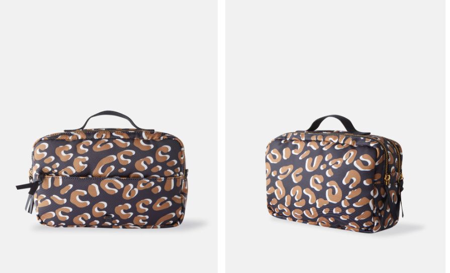 Primero el grande, con este modelo en marrón estampado animal print con doble compartimento, con cremallera y asa corta superior. Lleva un bolsillo frontal de cremallera y varios compartimentos interiores. Está hecho 100% en poliéster y aquí lo puedes comprar por 12,95 euros tan solo.
