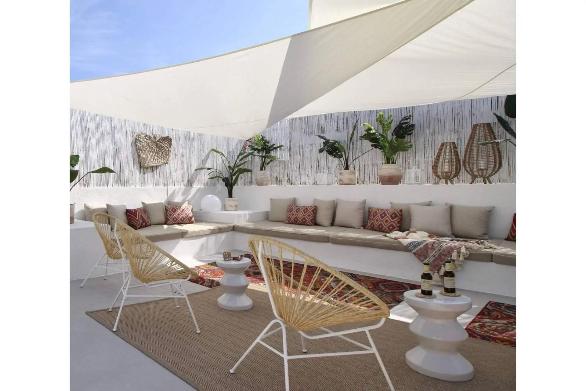Es fundamental crear una zona que proteja del sol. Para ello, el estudio cuenta con 3 recursos que no requieren más que una buena sujeción contra el viento, evitando así obras.