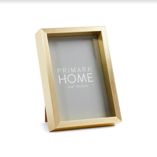 Este marco dorado con una terminación especial de Primark, cualquier fotografía que coloques en él resalta con el dorado de su marco. Un tamaño bien cómodo fácil de colocar en cualquier parte de tu hogar.