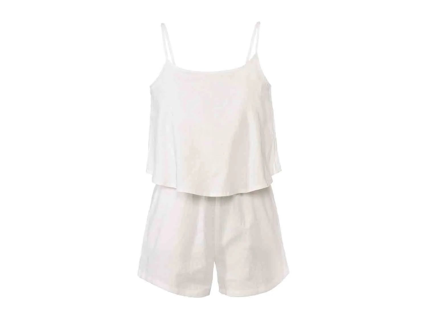 Y de un vestido corto y de lino a un mono, también tendencia cuando llega el buen tiempo y que luce en cualquier situación, cómodo y original. Este es de tirantes ajustables y cintura elástica, con cuello redondo, ideal para los días más calurosos y esas escapadas a la playa, la piscina, el chiringuito. Cómodo pero a la moda, con tejido ligero y fresco gracias al lino y a la viscosa. Está hecho en lino y viscosa. Su precio se queda en 9,99 euros.