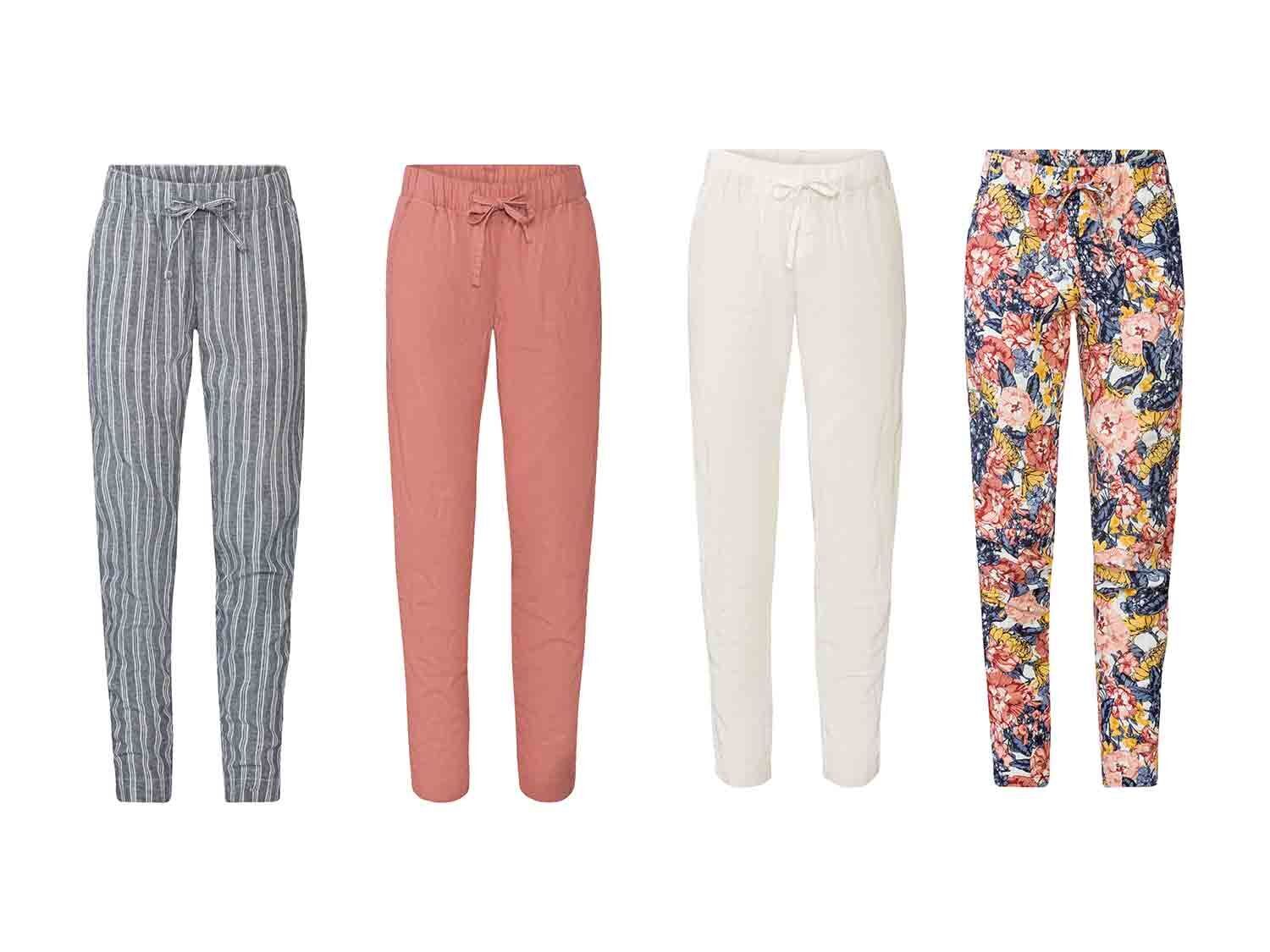 Como ves el lino es protagonista en la selección veraniega de Lidl, porque es un tejido de calidad, ligero, fresco y cómodo, ideal para el calor. También es tendencia el pantalón ligero, perfecto para ir más protegida del sol pero sin agobios. Son perfectos estas cuatro opciones con bajos de corte más estrecho, con bolsillos laterales, cintura elástica y cinta ajustable. Lo tienes blanco, estampado, rayas y rosa. Su precio es también de chollo: 9,99 euros.