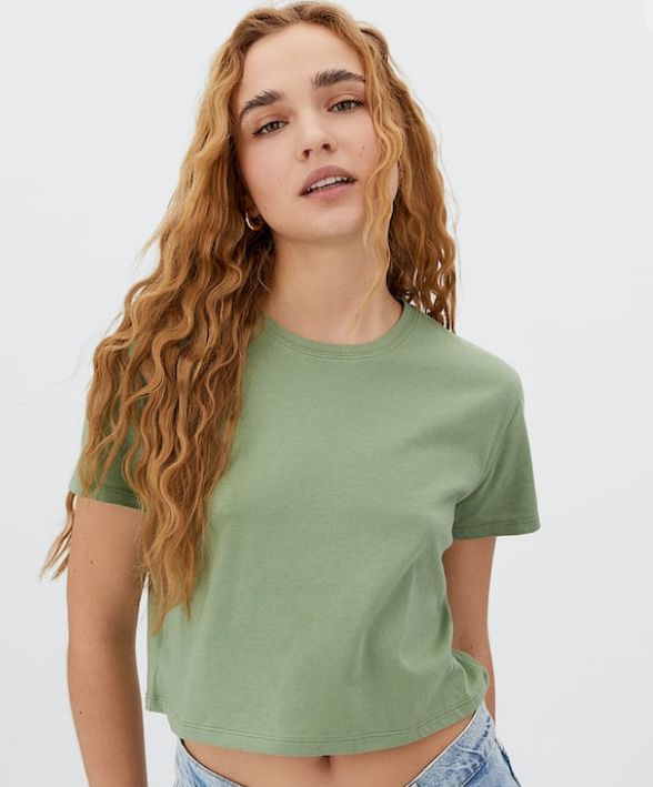 El verde es un color que sienta muy bien en verano, que es justo cuando las pieles suelen estar más bronceadas debido a la exposición solar. Así que si quieres verte más guapa en el espejo, el color de esta camiseta te ayudará a ello. Puedes comprarla en cualquiera de las tiendas de Stardivarius a un precio de escándalo. Solo cuesta 3’99 euros.
