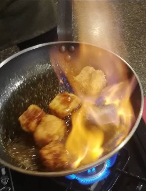 Cuando quieras destacarte en la presentación de tu leche frita, luego de pasarlas por azúcar y canela en polvo, puedes proceder a flambearlas, tomaran un espectacular aspecto sin cambiar para nada su sabor.