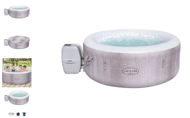 Es un spa hinchable con resistente estructura I-Beam, exterior con impresión imitación ratán y base interior de espuma con imitación gresite, con función de masaje AirJet, con 120 AirJets, y fácil de montar y desmontar. Caben hasta cuatro personas y con el monitor heladas hace que la bañera de hidromasaje se pueda utilizar durante todo el año: el calentamiento automático comienza a 6° C, se apaga de nuevo a 10° C y evita que el agua se congele. Tienes hasta posavasos. Aquí lo puedes comprar online.
