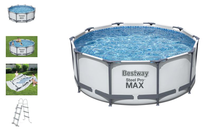 Si antes veíamos el jacuzzi portátil, ya puestos, si no tienes piscina propia, y si tienes sitio, puedes también hacerte con una piscina portátil como esta redonda modelo Steel Pro Max de 305 x 100 cm. La van a gozar los niños. Es un modelo tubular construida con DuraPlus, un material reforzado con un núcleo de malla de poliéster y dos capas de PVC de alto espesor para una resistencia y durabilidad superiores.