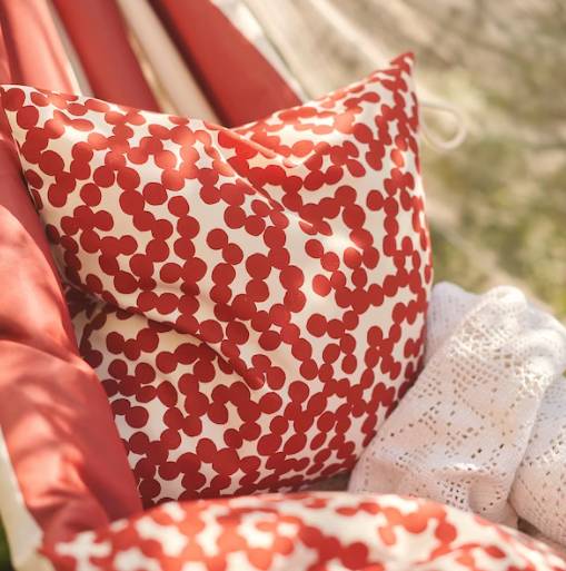 Hablando de cojines, en IKEA tienes una amplia selección de rellenos y de fundas para que puedas decorar la casa a tu gusto. El modelo que te mostramos es el Gullbergso en rojo con motivo de lunares.