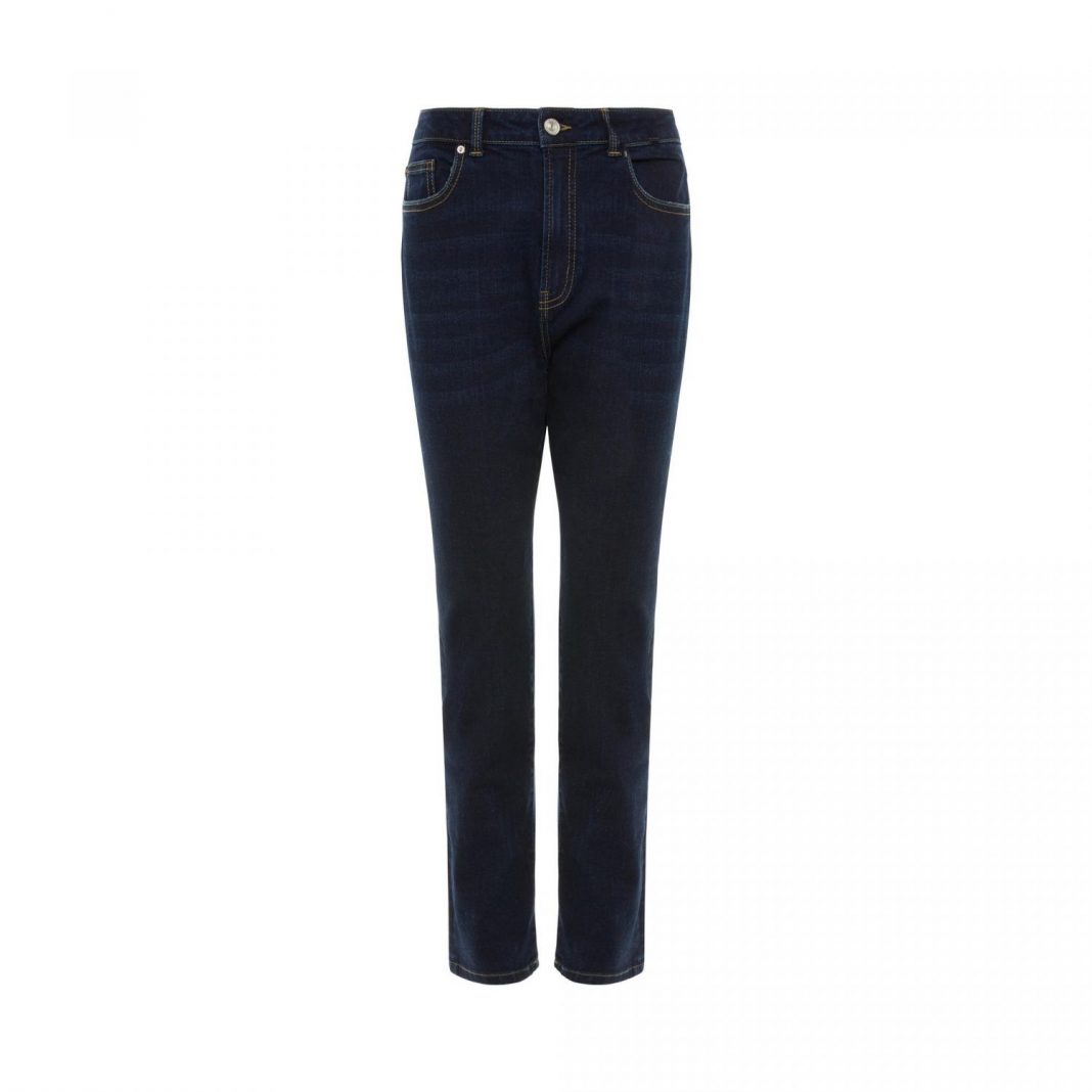 Pantalones de corte recto y entallados, con cintura de altura media y en un color azul oscuro que es totalmente atemporal. Unos jeans que te puedes poner durante todo el año.