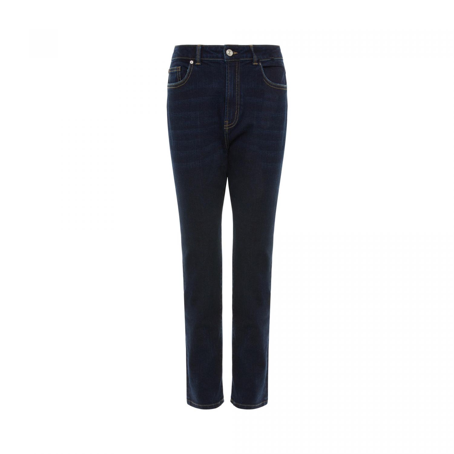 Pantalones de corte recto y entallados, con cintura de altura media y en un color azul oscuro que es totalmente atemporal. Unos jeans que te puedes poner durante todo el año.