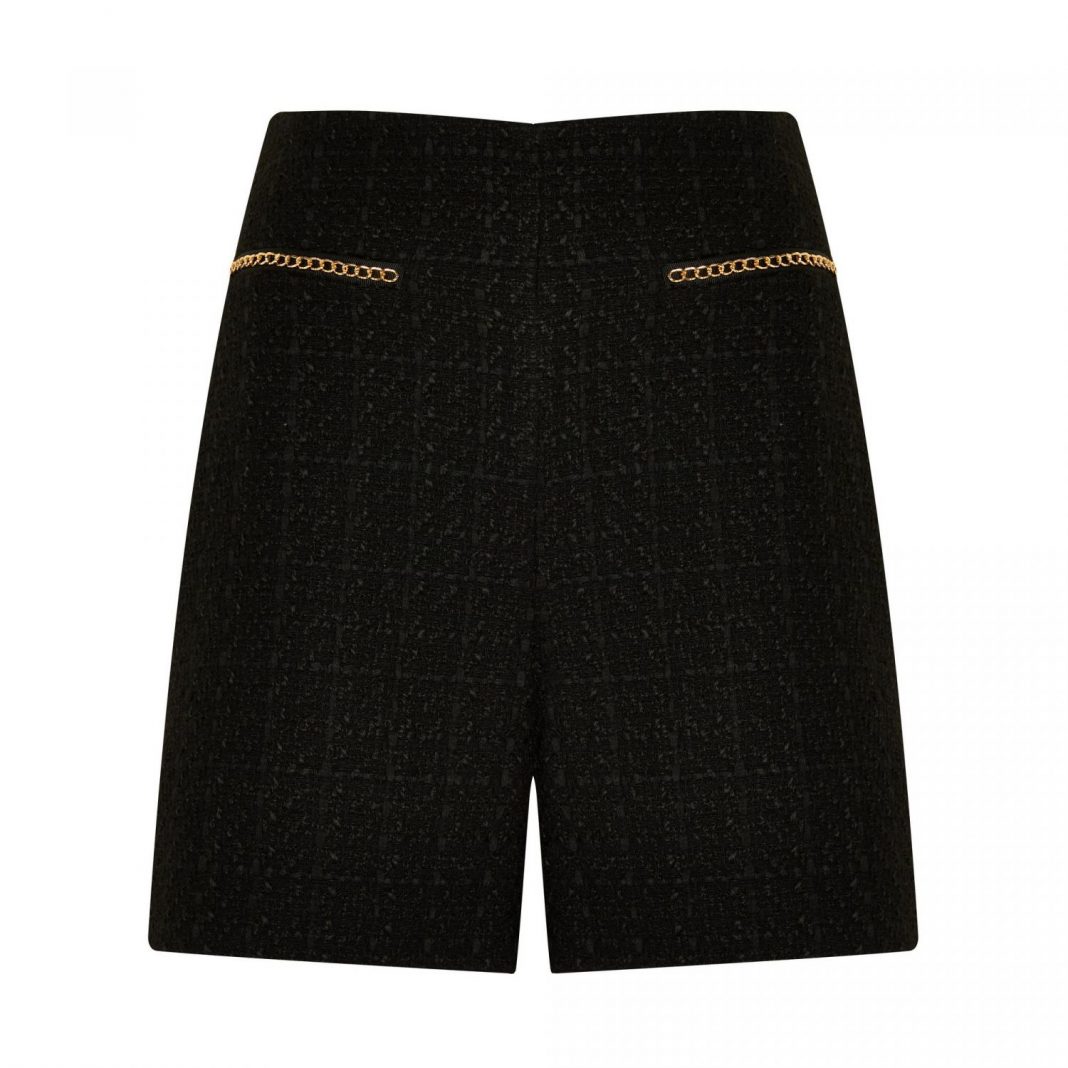 Se trata de un pantalón corto de tejido rizado, en el que el detalle especial lo aporta el ribete de cadena que se puede apreciar en los laterales.