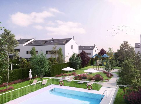 Así lo ha visto el proyecto THERA, gestionado por ZANDA HOMES, un proyecto residencial de viviendas unifamiliares con jardines privativos y zonas comunes con piscina en Mejorada del Campo.