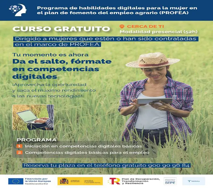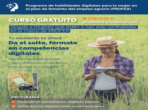 Las mujeres incluidas en el programa podrán realizar su inscripción a través de la web ‘www.cursosmujerrural.es’ o a través del teléfono 900 90 96 53, para las zonas de Jaén, Almería y Granada; 900 90 96 84 para Sevilla; 900 90 96 85 en las zonas de Canarias, Comunidad Valenciana, Murcia, Castilla y León y Aragón; y el 900 90 96 87 en el caso de Castilla-La Mancha.