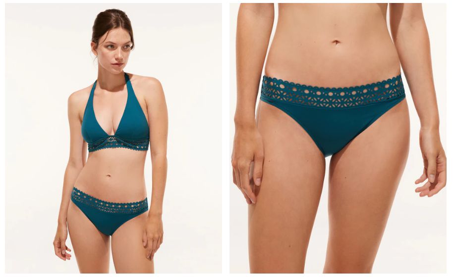 Terminamos con otra propuesta para rascarse algo más el bolsillo, pero que vale igualmente la pena, más aún con el 30% de descuento. Es este modelo de Lise Charmel en clásica lisa y que rezuma elegancia y precisamente eso, clasicismo pero siempre a la moda. En un bonito color verde, es una braga media que recoge bien y que como siempre puede completar con el top. La tienes en este enlace de El Corte Inglés por 53,90 euros.