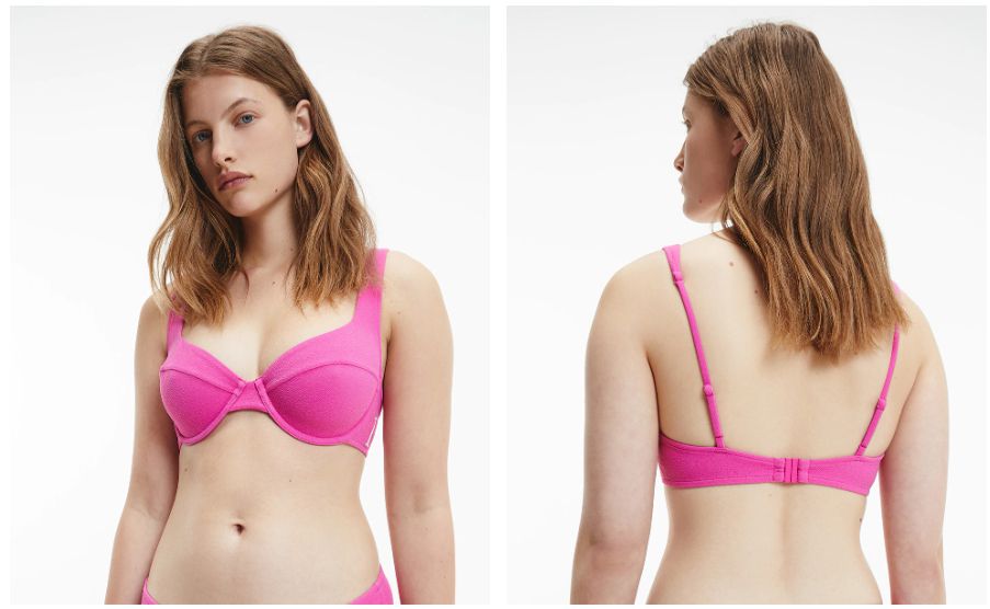Volvemos a esta otra marca top, con este top de bikini en liso con foam y disponible en color rosa o azul, siempre favorecedores para la playa y piscina, colores alegres y preciosos. Fabricado con nylon reciclado y lycra tejido toalla amplia cobertura logo cok one estampado en un lateral copas moldeadas, tiene talle alto cintura elástica bolsillos en los laterales. Lo tienes con un 20% de descuento y un precio de 43,92 euros.