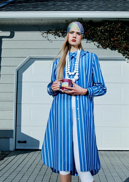 Las camisas largas tipo bata están muy de moda desde hace algunos meses. De ahí que esta prenda que puedes ver en la imagen se esté vendiendo tan bien en cualquiera de las tiendas que Sfera tiene repartidas a lo largo del país. Se trata de una camisa de rayas largas de colores azul y blanco que destaca por tener volantes en cuello. Pero también por tener un sistema de cierre frontal de botones. Su precio es de solo 15’99 euros.