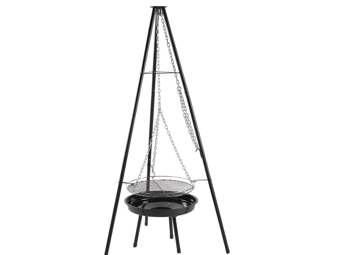 Comenzamos el listado de barbacoas que deberías comprar este verano por menos de 60 euros, y que Lidl tiene disponible desde su tienda online. Hemos visto esta que es colgante de gran tamaño, de acero cromado, con 41 cm de diámetro. Las medidas totales son aproximadamente de 75 x 84 cm (L x A). El trípode es resistente de metal con revestimiento en polvo. Podrás cocinar diversidad de alimentos durante mucho tiempo, su diseño está formado para distribuir el calor de forma óptima. El precio es de 39,99 euros.