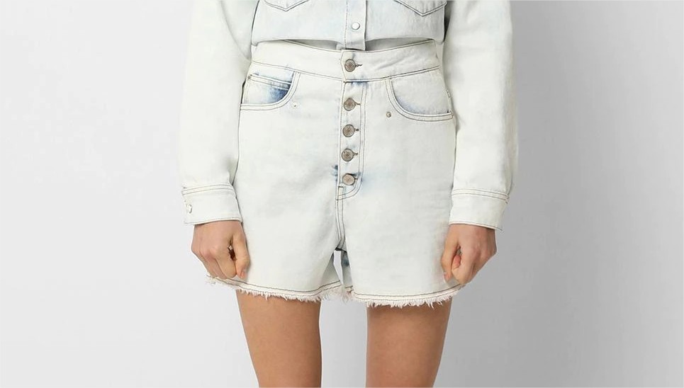 Llegamos al final de esta lista de productos con grandes rebajas de la marca Scalpers con un short vaquero del que te enamorarás a primera vista. Se trata de un modelo en color azul claro lavado, de tiro alto con cierre de botones y bajo flecado.