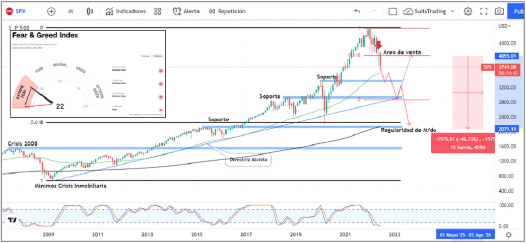El 30 de enero de 2022, compartimos con nuestros lectores un artículo denominado “Cinco ingredientes que hacen del S&P 500 una bomba de tiempo”. Todavía no sucedía la incursión de Rusia contra Ucrania, aunque ya desde la OTAN querían guerra, la evolución de la pandemia era la noticia más sonada y de acuerdo con nuestros análisis, preveíamos una caída del índice del -30% hasta los 3.300 dólares.