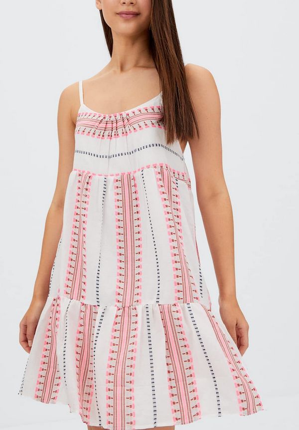 Hacía mucho tiempo que no veíamos una prenda tan especial como esta que ves en la imagen. Se trata de un vestido que tiene un diseño corto, un escote recto y un bajo que acaba en volantes. Además, tiene un estampado que es muy original. Está disponible en varios colores y su precio es de tan solo 15’99 euros.