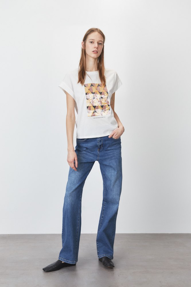 Aunque parece una sencilla camiseta confeccionada en algodón, lo cierto es que esta prenda es mucho más, porque incluye un gráfico central elaborado a base de lentejuelas.