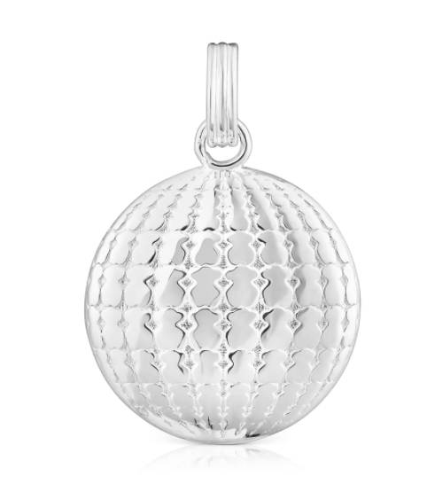 Una original bola de discoteca elaborada en plata de primera ley y grabada con osos, con un tamaño de 22 cm, la parte trasera es lisa y plana para que luzcas tu nuevo colgante favorito con la máxima comodidad.