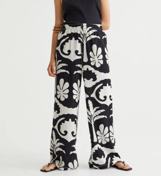 Llevar las piernas cubiertas cuando hace tanto calor no es ningún problema si escoges un pantalón de lino, porque se trata de un tejido muy ligero que deja que tu cuerpo transpire. Y más si es una versión de perneras anchas como esta que te mostramos.