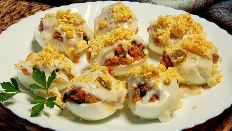 Los huevos rellenos son un clásico de la gastronomía española que se degusta durante todo el año, aunque en muchas casas son una receta típica de Navidad. Habitualmente los comemos con atún, pero hoy te traemos una nueva versión.