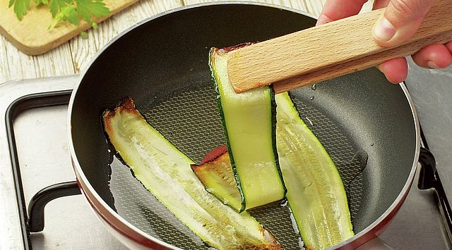 Ya tenemos la forma de estos espaguetis, pero falta conseguir algo más. Como bien sabemos, la textura de esta hortaliza es dura, por lo que deberíamos de ablandarla un poco. Este efecto lo conseguimos friendo con muy poco aceite y a fuego vivo estas tiras de calabacín durante muy pocos minutos. De esta manera, cogerán un aspecto algo más blanco y comestible, y se terminarán de acercar al gusto que suele tener un espagueti. Es algo difícil de creer, pero llegan a conseguir casi el mismo sabor.