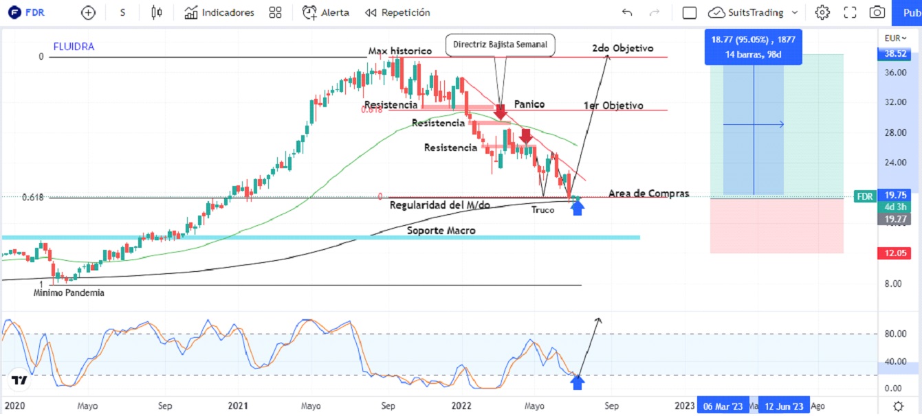 Bajo esta premisa ubicaremos entonces un segundo objetivo en Fluidra en los máximos históricos sobre los 38 euros por acción que, en cualquiera de las 2 opciones, obtendríamos un beneficio entre el 60% y el 95% estimado a un mediano y largo plazo.
