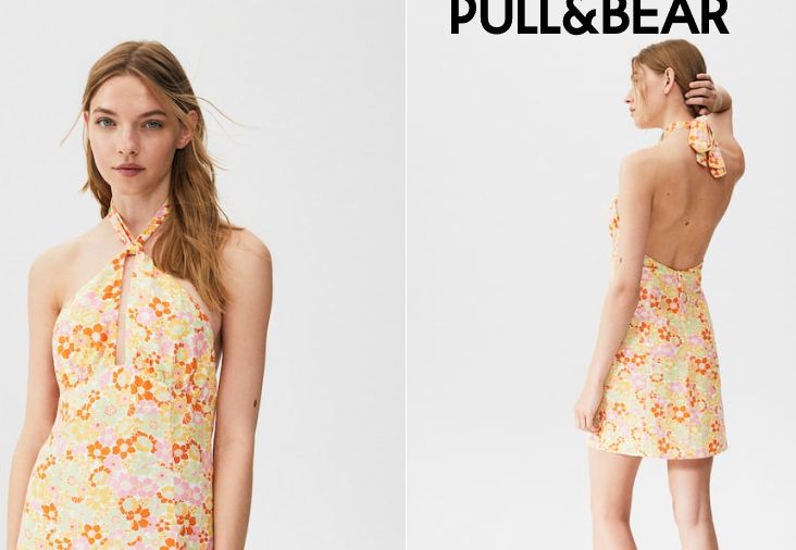 No puede faltar en la selección el vestido, y un modelo tan veraniego como un modelo corto y cómodo como este. Es de estampado de flores con cuello halter y detalle cut out. Un vestido de lo más sexy e ideal para lucir este verano tanto en fiestas, o para llevar a tus vacaciones, a la playa o a lucirlo por el paseo marítimo. Es un compra casi obligada porque con las rebajas de Pull&Bear se queda en un precio ridículo de 12,99 euros.