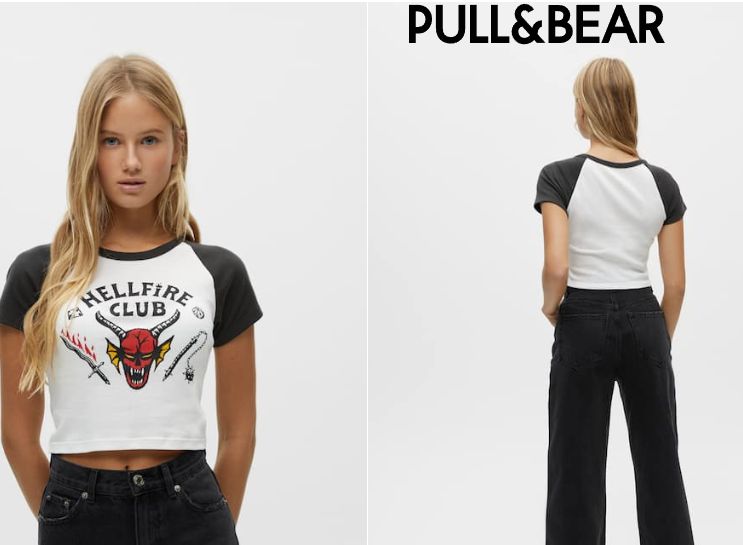 Vamos con una camiseta de lo más roquera y transgresora, para ir casual y moderna, alejados de los modelos que hemos visto antes. Tienes esta camiseta Stranger Things Hellfire por tan solo 15,99 euros. Es una camiseta con licencia Stranger Things y print estampado de Hellfire, manga corta en contraste, cropped y cuello redondo con rib. Un capricho ideal para combinar como ves con vaqueros y con la podrás ir este verano a conciertos, a fiestas, a reuniones con amigos…