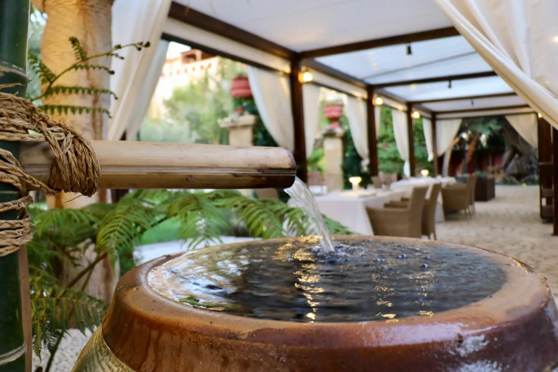 La primera vez que se cruza la puerta de esta villa histórica sorprende la notable vegetación, que incluye algunos ejemplares que costará volver a ver en dimensión y belleza. Las vistas desde la terraza muestran olivos bimilenarios, bambú de más de tres metros de altura y palmeras gigantes, frutales y todo tipo de flores y aromáticas que el chef cultiva para cocinar.