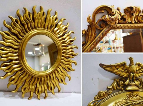 En el stock de Galería 34 se pueden apreciar espejos vintage redondos, rectangulares, cuadrados y ovalados. Sus estilos pueden ser barroco, sol metálico, Napoleón III, doble hoja, con cornucopias doradas, estilo veneciano o estilo italiano. Lo especial de sus espejos es que son únicos, son espejo vintage que han perdurado al tiempo y ahora se usan en las grandes decoraciones de espacios lujosos y en viviendas con estilo.