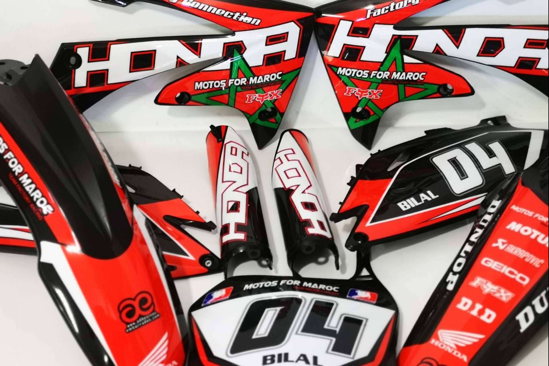 La disciplina deportiva para motos off road se ha consolidado como una práctica de gran importancia en el sector a nivel internacional. Los campeonatos llevados a cabo en diversos países de forma anual han propiciado que se genere la necesidad de personalizar la moto añadiendo plásticos y adhesivos que faciliten el reconocimiento del piloto. Esta costumbre se ha trasladado a los aficionados que cada vez buscan nuevas formas de decorar el dorsal, con nombre y logotipos de su usuario.