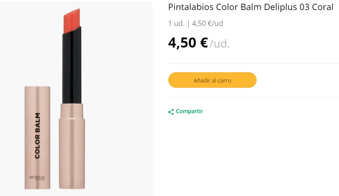 Mercadona también tiene este pintalabios Color Balm de Deliplus en tono coral, en concreto es el número 03. Se trata de unas barras de labios a medio camino entre bálsamo y labial, por lo que podemos esperar que estos labiales sean súper hidratantes con una cobertura ligera en cuanto a color. Su precio es de 4,50 €. Están testados dermatológicamente y fabricados por WeColors. Además, estas barras de labios están perfumadas y podemos encontrar algunos tonos con aromas más cítricos y otros que recuerdan más a la vainilla.