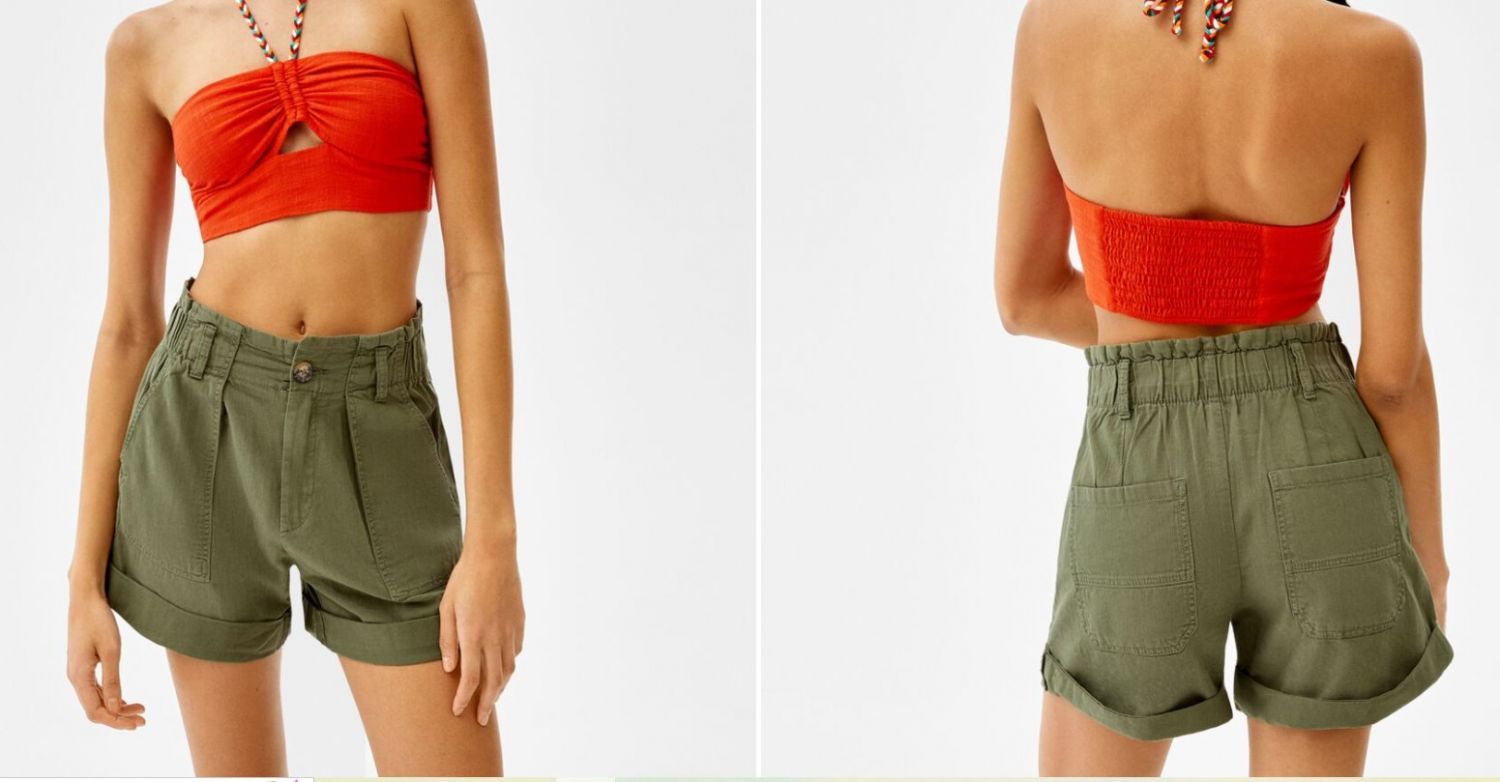 Este es un pantalón corto, pero que no es un tamaño extra mini tipo cargo, fabricado en 100% algodón. Puedes hacerte en Bershka con estos shorts de diseño bermuda. Disponibles en un bonito tono kaki, crudo y visón, capaz de combinar con todo, serán otro de los básicos de tu armario. Además, están rebajados y te puedes hacer con ellos por tan solo 13,99 euros.